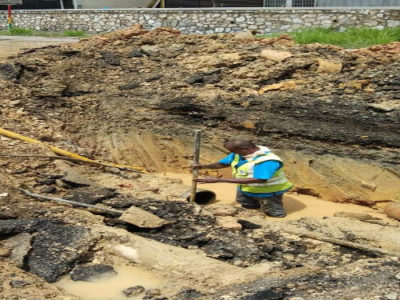抢修破裂的地下水管 4500劳勿住户断水
