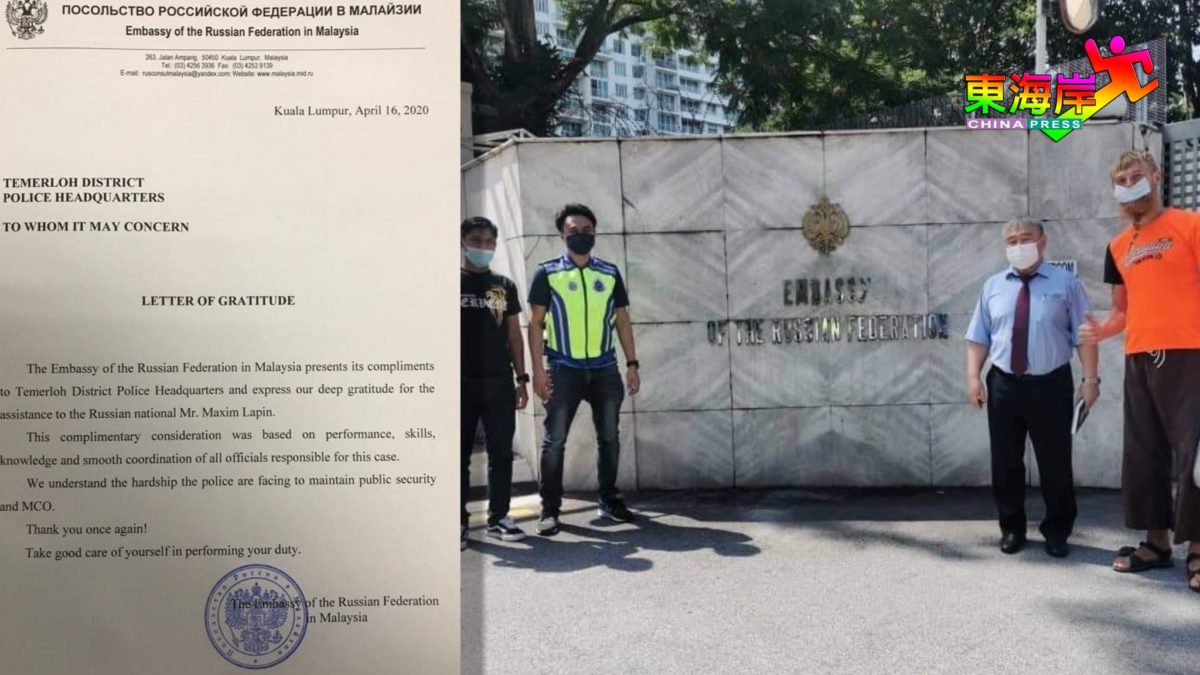 淡马鲁警方协助俄罗斯男子 大使馆致函感谢赞扬